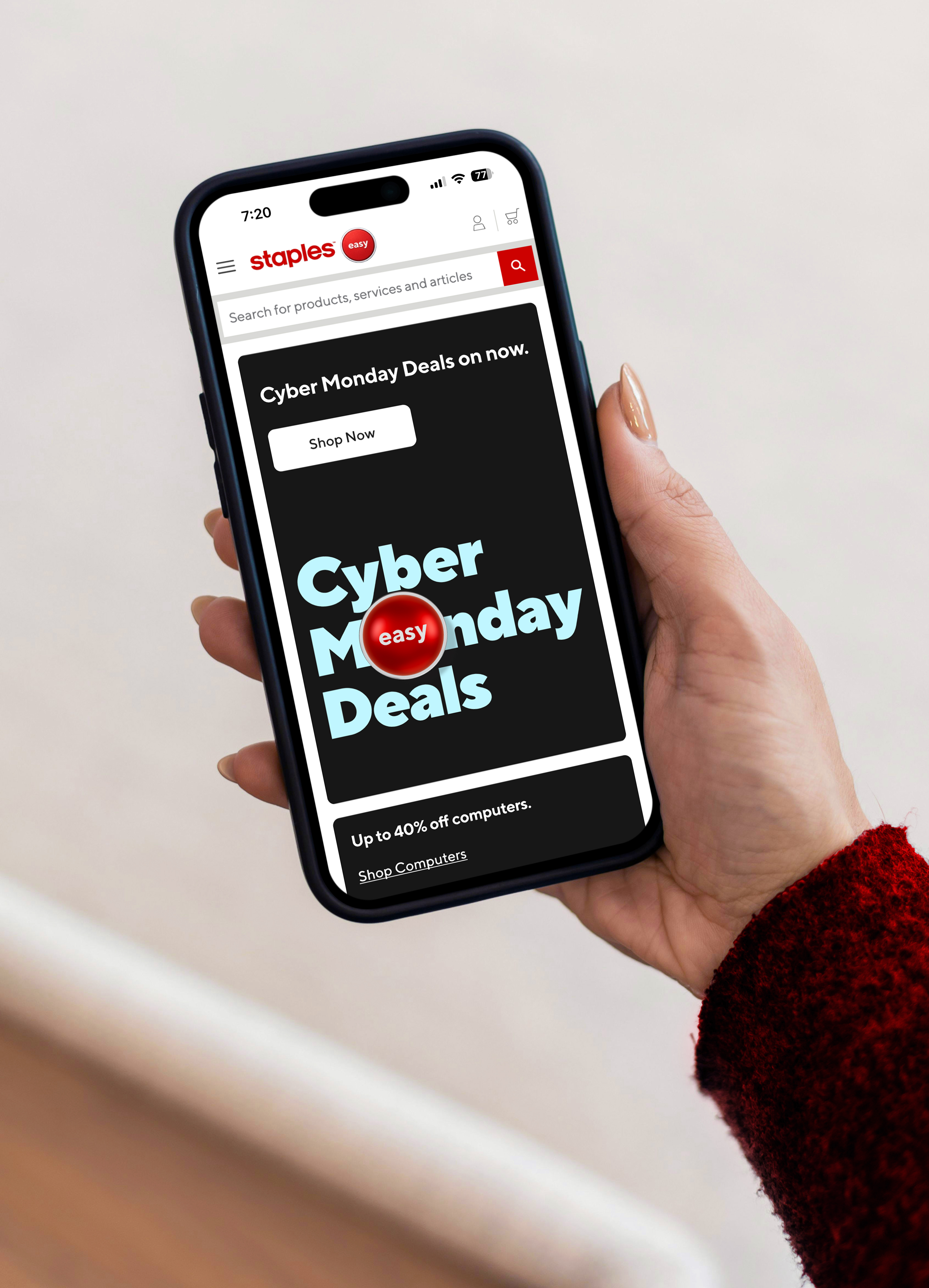 As the creative lead on the three key events concluding Staples Canada's 2025 Holiday campaign, I created dynamic, digital and print-friendly event lockups and art direction for Black Friday, Cyber Monday, and Boxing Day.