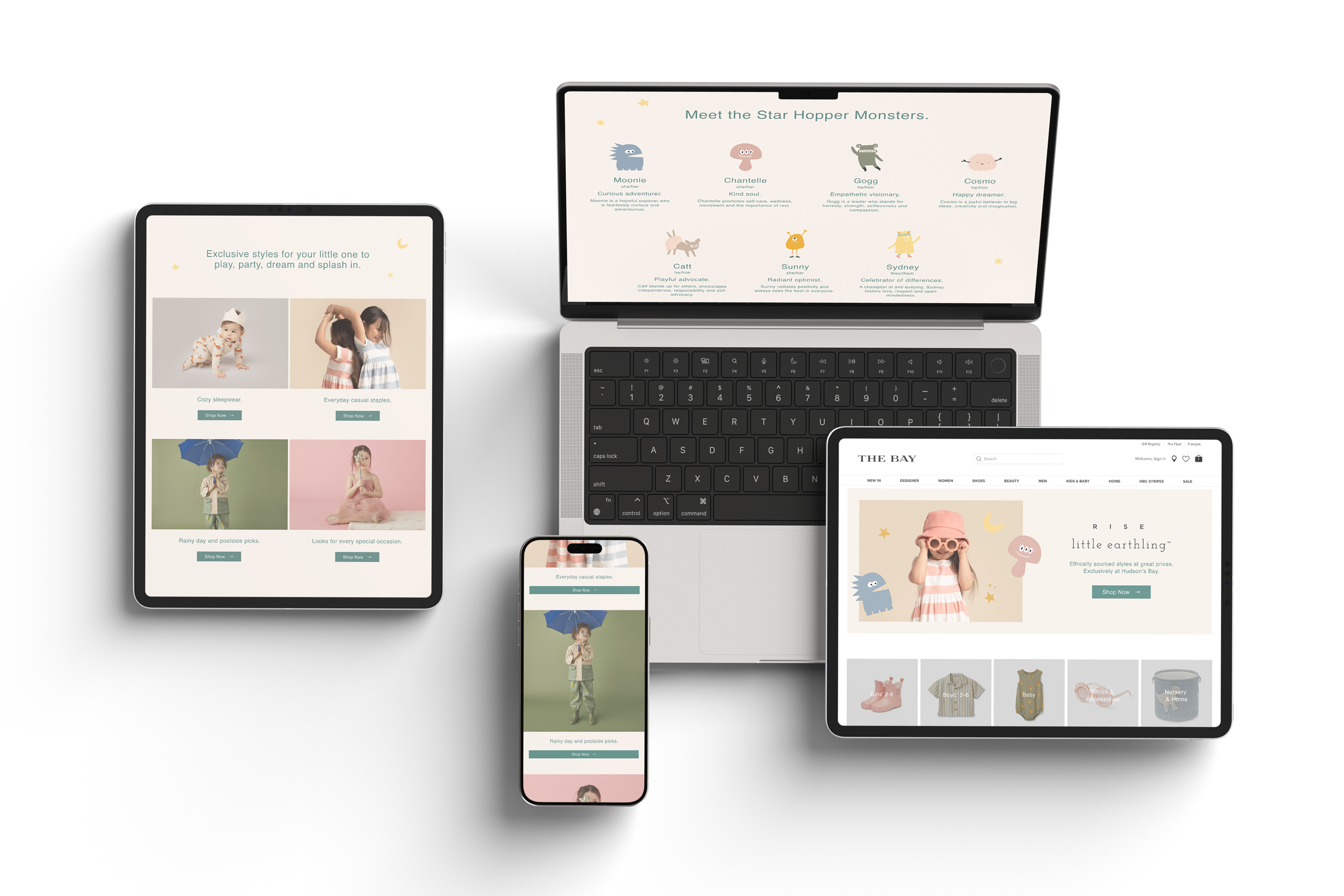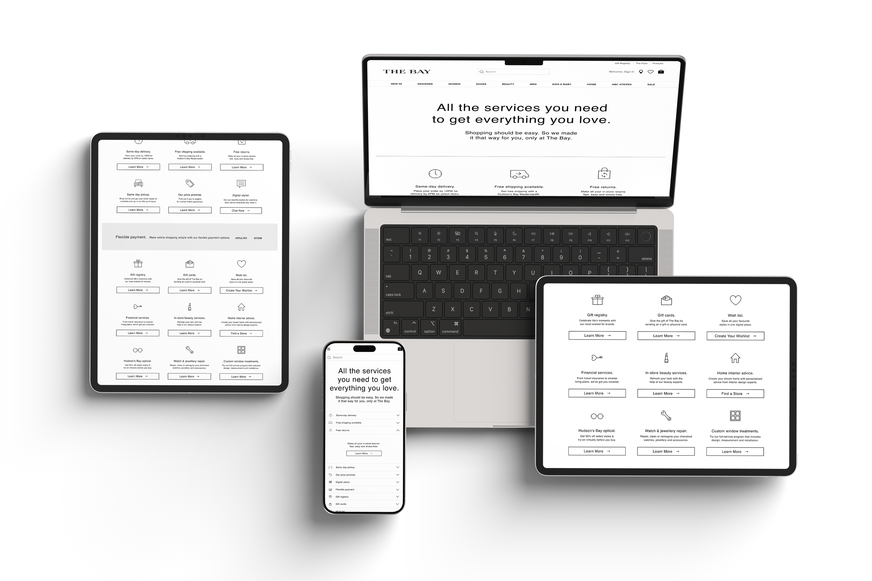 Each design was optimized to be accessible, responsive across platforms and beautiful. I also collected products from The Bay's
